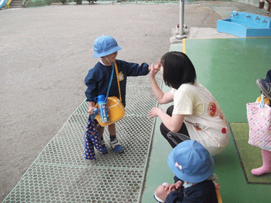 登園したら、カバンと帽子を