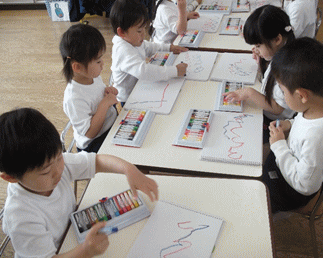 クレヨンでお絵かきもします!→ |