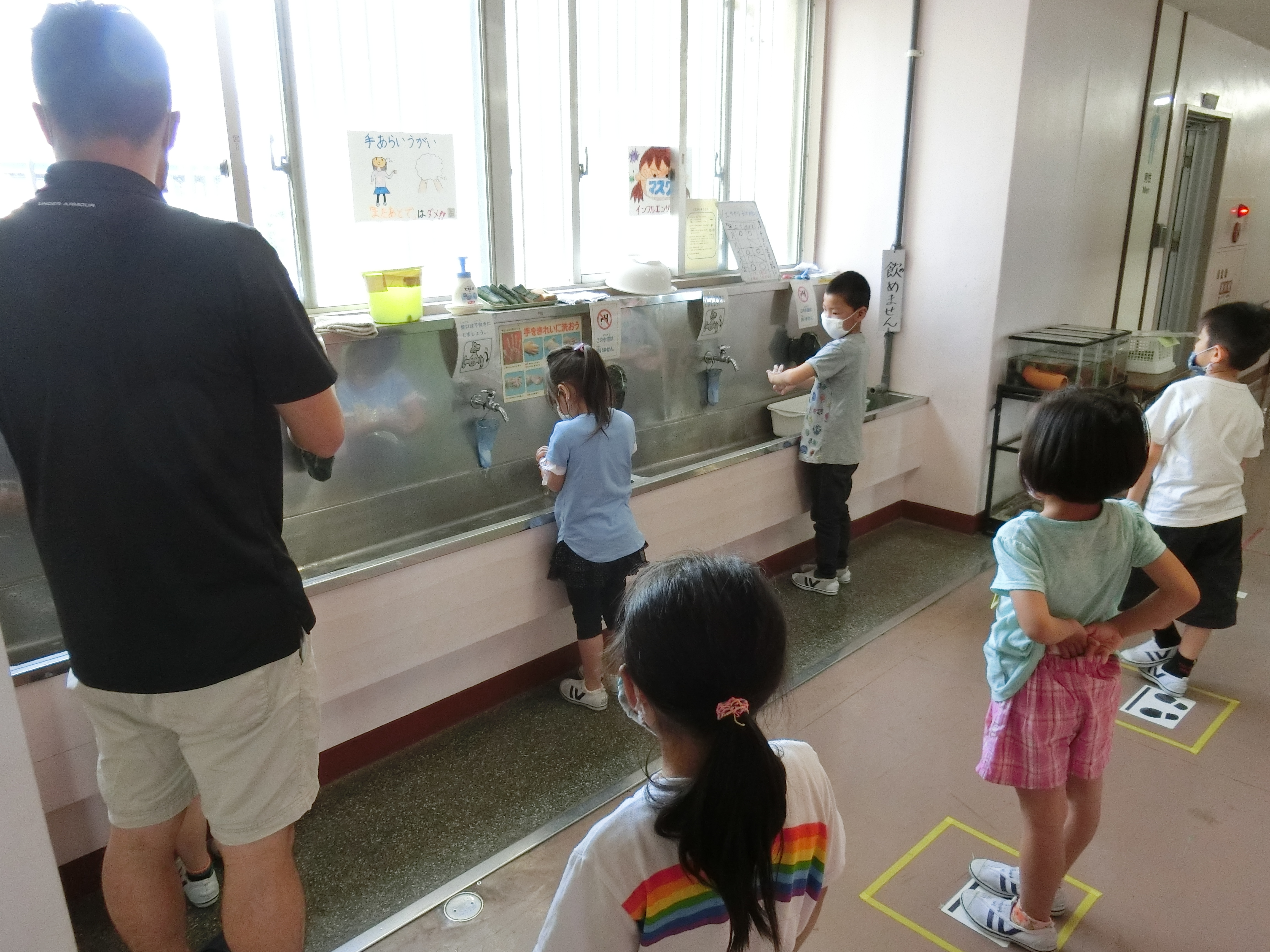 ☆水道も間隔を空けて使用するように指導しています。 |