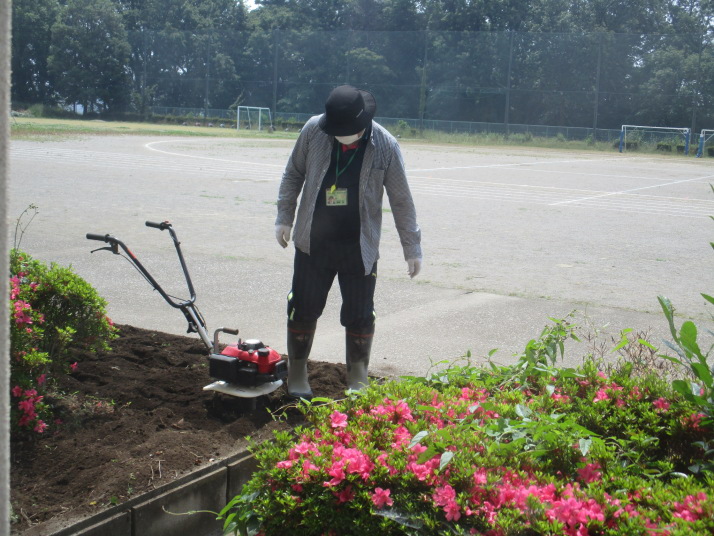 H先生は、小型耕運機で畑作りです。交通指導員のFさんには、朝だけでなく、下校の時もお世話になっています。感謝です。
