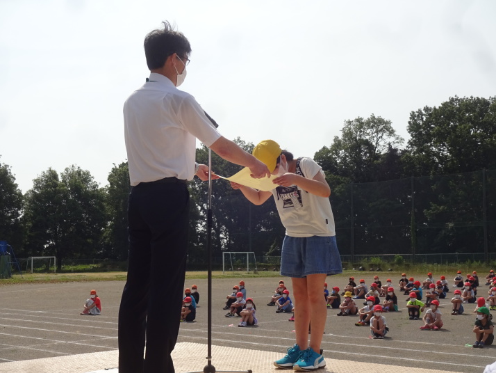6月9日(火)やっと全員で登校!今日からみんなで再スタートです!朝は講話朝会。表彰から始まりました。