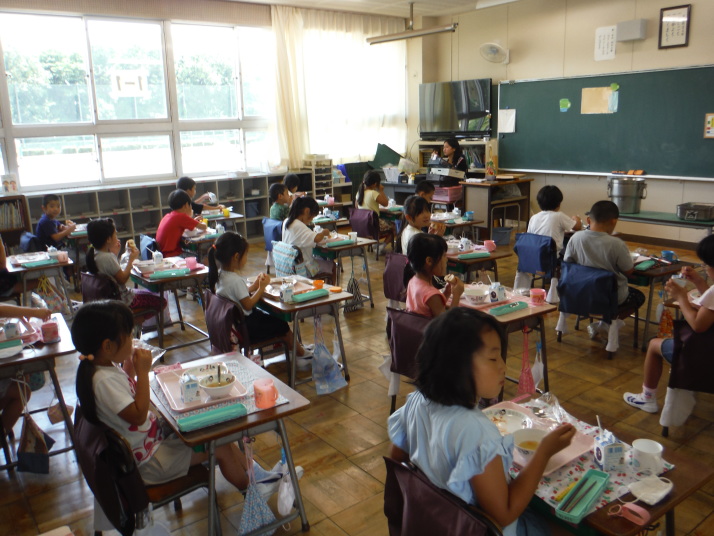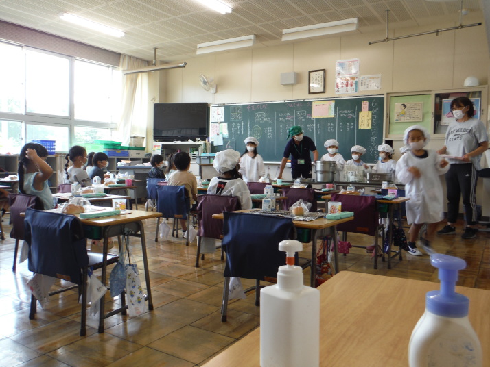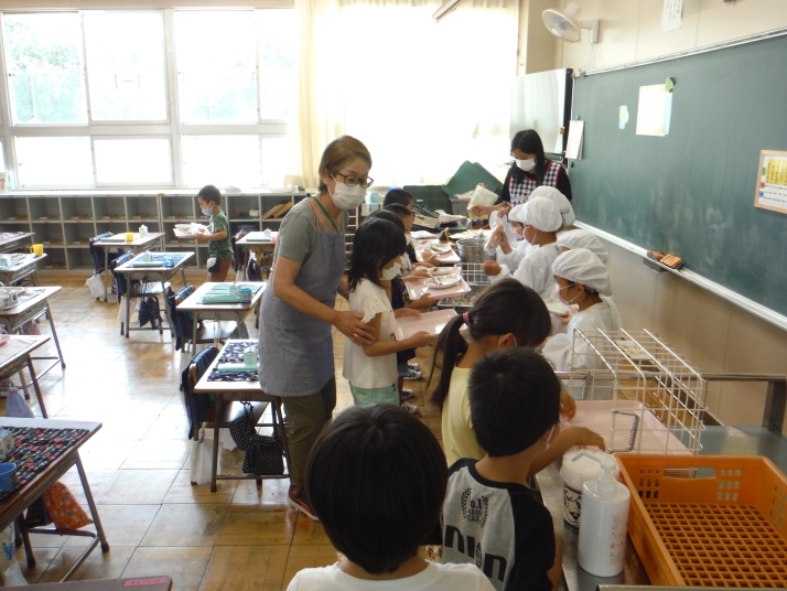 6月5日(月) 1年生は初めての給食です。4時間目を全部使って説明、準備しました。おいしく食べられたかな。