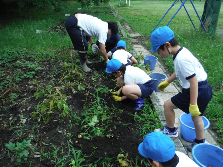 6月24日 ジャガイモ掘りです。大きいいもから小さいいもまでたくさんとれました。 25日先生向けに販売です!