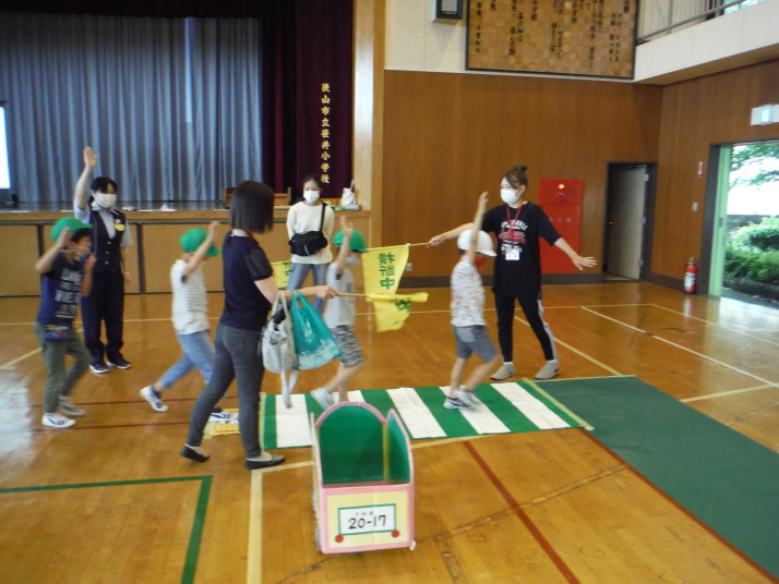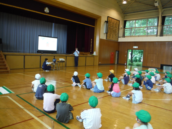 1,2年生は交通指導員のかたに交通安全教室で指導していただきました。校外生活委員の方にも旗振り講習をかねて参加していただきました。