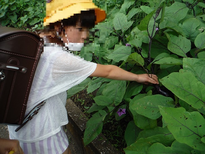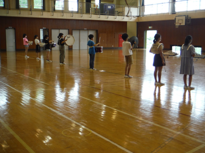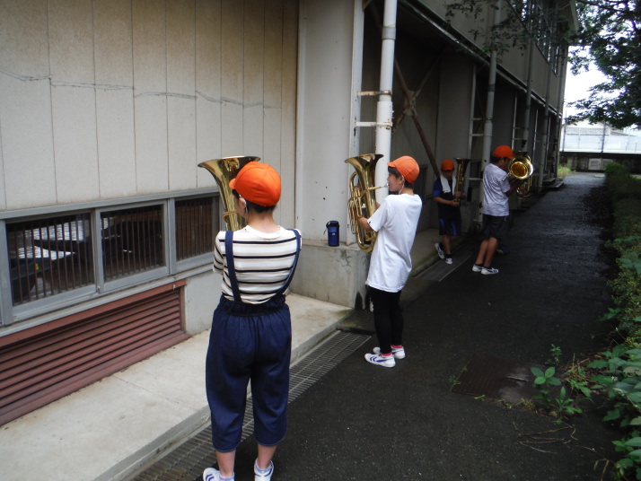 7月14日(火) 6年生のマーチング練習を始めて間もないですが、驚くほどの成長ぶりです! 頑張っています。花壇には、花とともに野菜が。「大きいナスがあるよ~」。コロナ感染防止に気を配りながらも みんな楽しそうに頑張っています!