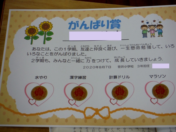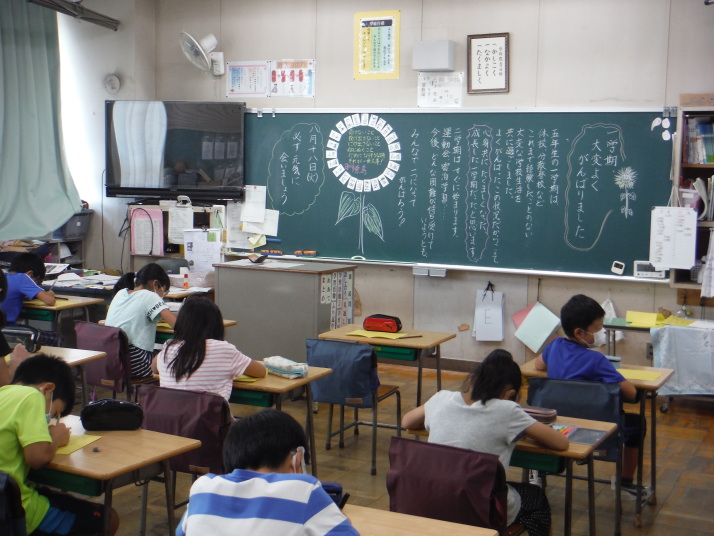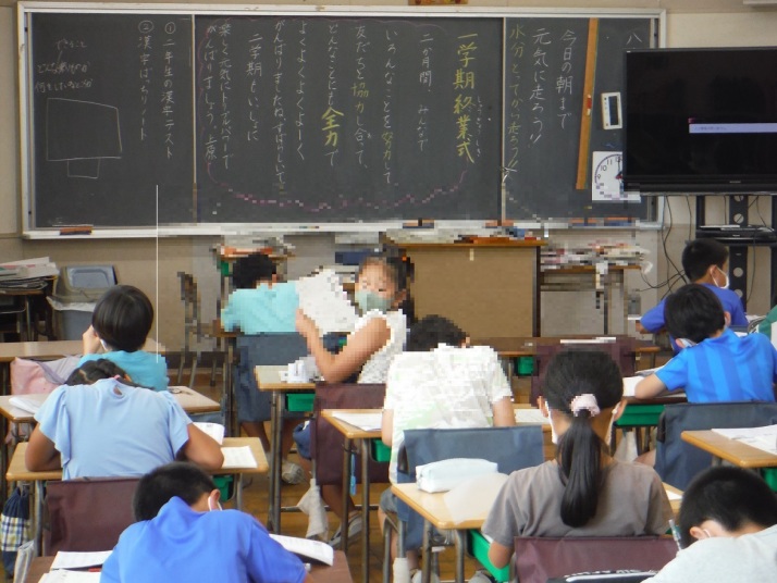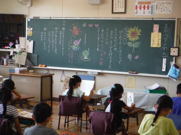 8月7日(金) 1学期終業式。外は暑いので、放送による式にしました。1年生の6人が今学期頑張ったことや これから頑張ることを堂々と話してくれました。(とても立派でした)1年生は初めての通知表。どうだったかな。 明日から10日間の夏休みです。いい夏休みにして、18日(火)に元気に登校してくださいね。待ってます。