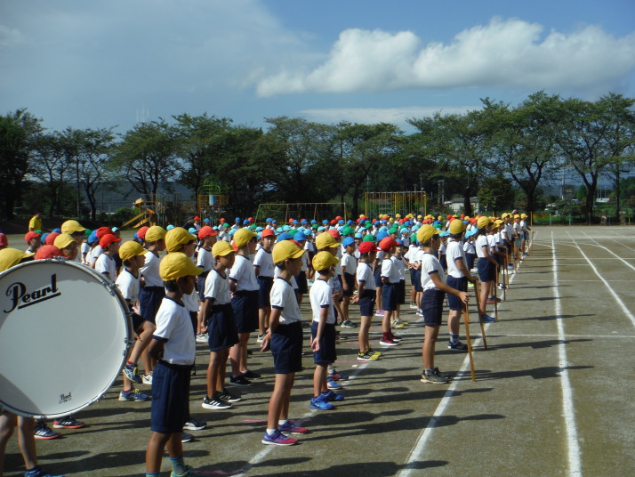 9月8日(火) 運動会全体練習はじまりました。第1回目の今日は、全体種目の練習もしました。 例年「大玉送り」競技でしたが、コロナウイルス感染予防を考え、学年ごとに行う赤青対抗「玉入れ」 にしてみました。どの子も黙々と球を投げ続けます。練習では116対82で紅組の勝ち・・・・・でしたが 本番は、分かりませんよ!! 熱中症、コロナウイルス感染に気をつけながらの練習が続きます。