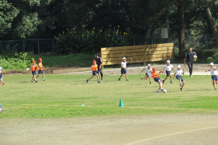 10月21日(水) 本日3年生、4年生を対象に、JFA(日本サッカー協会)が企画するサッカー教室を行いました。 JFAの依頼を受けた近隣スポークラブの若手コーチが3人、来校してくれました。さすが、指導のプロです。 わずか1時間ではありましたが、子どもたちは最初から最後まで本当に楽しそうに、たっぷり動き回ることができました。 サッカーコーチのSさんKさんSさんありがとうございました。3コーチが「すっごく楽しかったです」とおっしゃっていました。 今日もいい天気でした。