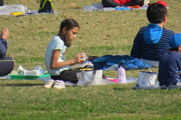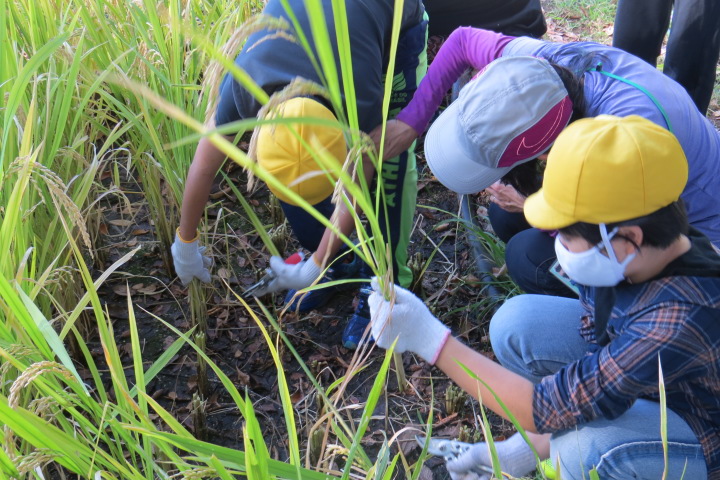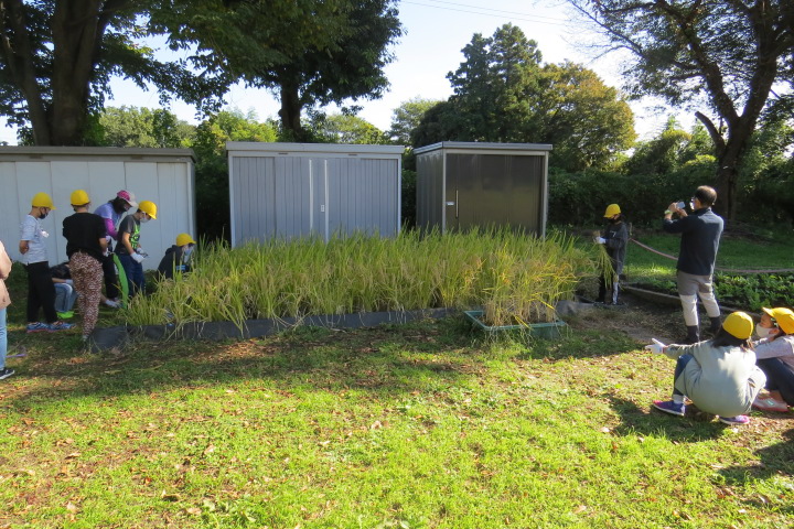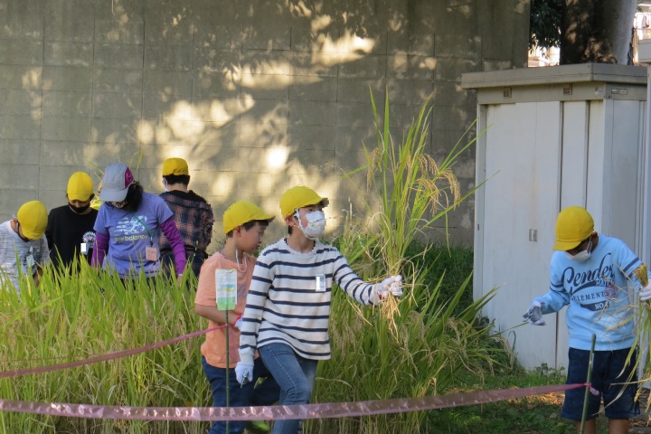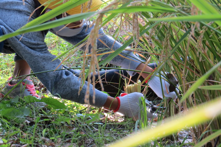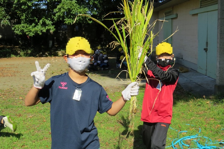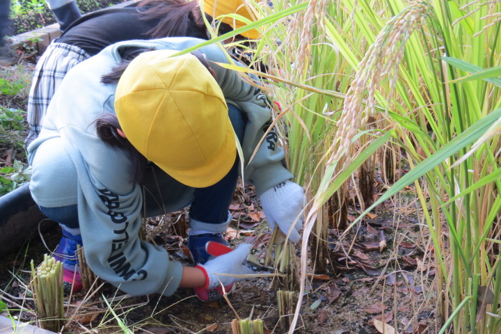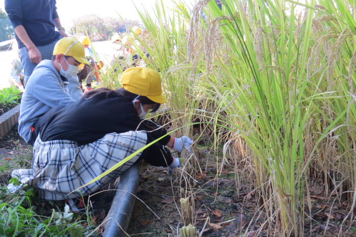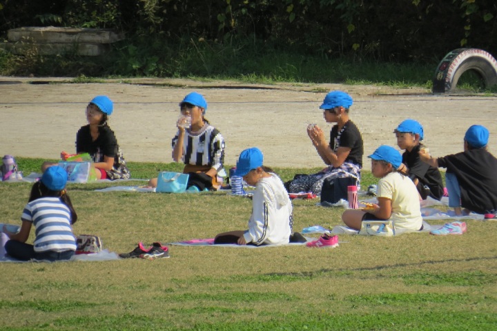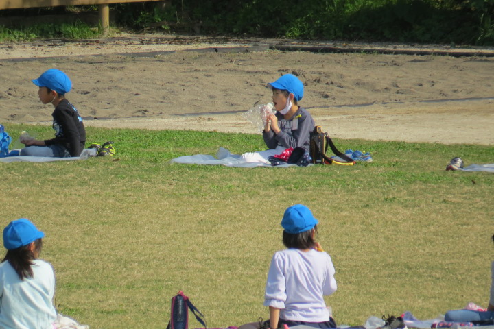10月26日27日(火) 26日手塩にかけて育ててきた笹田の稲を5年生みんなで切りました(刈りました) 稲穂にはたくさんの実がいっぱいです。新米を炊いてみんなで食べたらおいしいだろうなあ。 27日は3年生日和田山への遠足の予定でしたが・・・・先週から発熱、風邪の子が増加。涙をのんで、11月11日 に延期しました。そこで・・・3年生は学校の芝生でお弁当タイムです!これはこれで楽しかった!