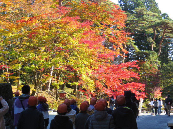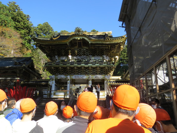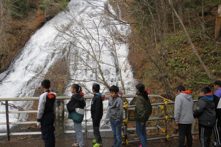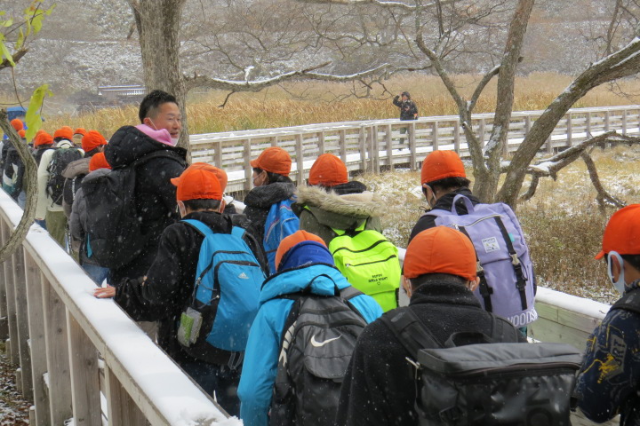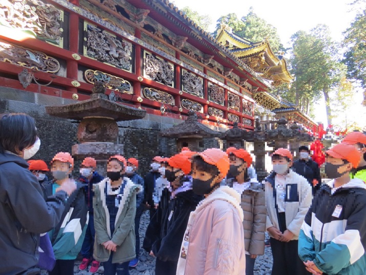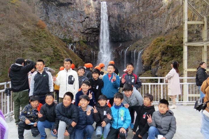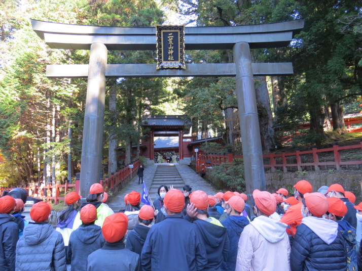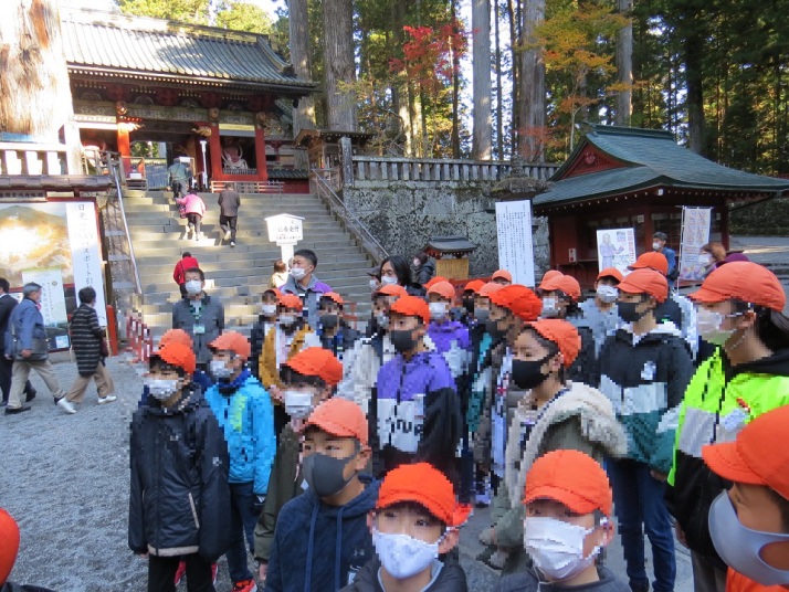 11月4日5日(木) 6年生、待ちに待った修学旅行に行ってきました。38人全員参加です。良かったあ。 2日間とも基本的にはすばらしい青空快晴でした・・・・・が金精峠から奥日光がなんと雪でした。寒かった。 しかし、紅葉の赤や黄色と雪の白がとても美しい。なかなかできない体験でした。伝説のオレンジ帽子。立派な修学旅行でした。