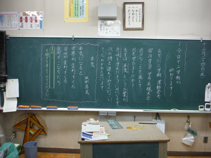 12月24日 長かった2学期も終業式を迎えることができました。93日間。子どもたちも職員も コロナ禍であっても笑顔を絶やすことなくよく頑張りました。運動会や修学旅行など各行事もご家庭の ご理解とご協力により、充実した活動として行うことができました。感謝申し上げます。 今年度も残り3ヶ月となりましたが、子どもたちのため努力してまいります。 来年もよろしくお願いいたします。良いお年をお迎えください。1/8 元気に笑顔で会いましょう!!