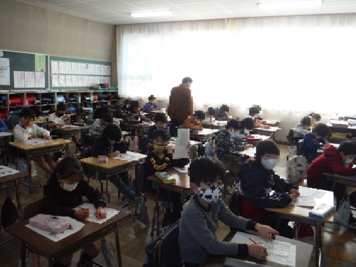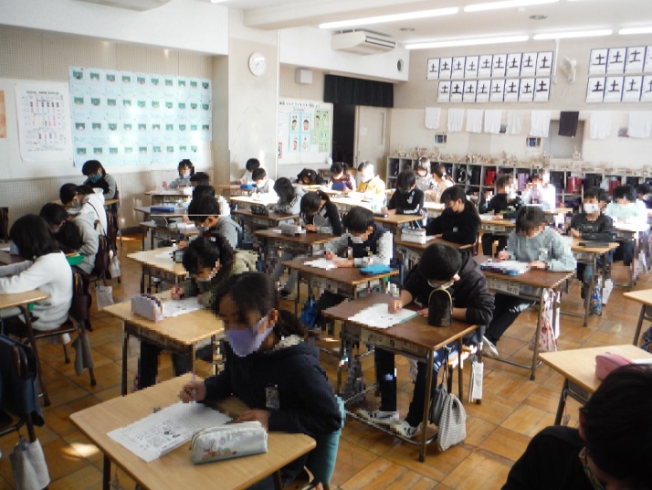1月22日(金) 3学期が始まり2週間がたちました。緊急事態宣言下のため、続けていた朝マラソンは一時停止としましたが、 朝の校庭は賑やかです。今は、縄跳びがブームのようです。6年生は、学級でティーボール?をやっています。みんな元気いっぱいです。 今日の朝学習は、国語スキル。読解力をつけるために毎週行ってきました。力はついたかな? 廊下には、校内書き初め展や理科でとり出した化石が展示してあります。「チバニアン」なんて文字が・・・・・・・・・